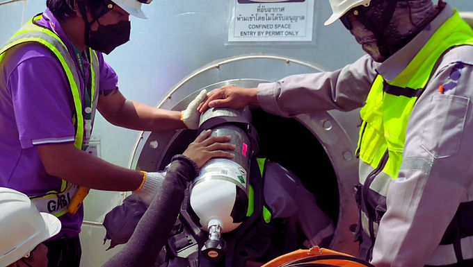 การใช้อุปกรณ์ช่วยเหลือและช่วยชีวิตในที่อับอากาศ